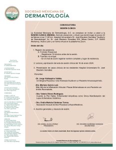 El Dr. Daniel Alcalá inicia dando la bienvenida a los asistentes presentes y virtuales y agradece al servicio de Dermatología del Hospital Universitario de Nuevo León, encabezado por el Dr. Jorge Ocampo Candiani, así como a la Dra. Minerva Gómez y a todo el equipo por permitir la realización de la sesión. Posteriormente, el Dr. Ricardo Quiñones da lectura al acta de la sesión clínica anterior, la cual es aceptada por unanimidad.
