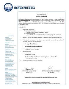 El siguiente trabajo de ingreso lo presenta la Dra. Valeria Lyzzete Díaz Molina, titulado “Análisis retrospectivo a 5 años de las interconsultas recibidas por el servicio de dermatología en un centro de alta especialidad” En las conclusiones y comentarios, se menciona que las interconsultas que predominan son las de dermatosis inflamatorias, infecciosas y reacciones adversas a medicamentos y se resalta el papel del dermatólogo en el abordaje diagnóstico y terapéutico oportuno. Al término, se felicita a la doctora, se realiza la votación y es aceptada por en la sociedad.