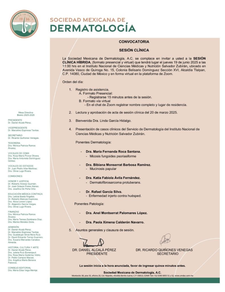 Acta de la Sesión de la Sociedad Mexicana de Dermatología (SMD) – 6 de febrero de 2025 Apert...